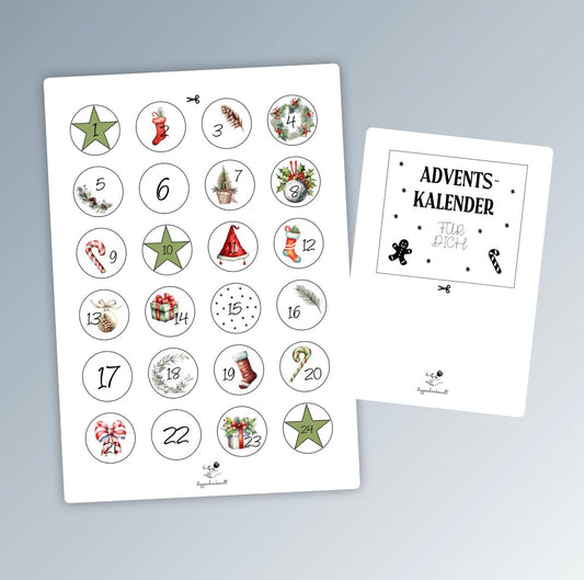Adventskalender to go, kleines Geschenk, Adventsgeschenk, Weihnachtsgeschenk, Kalender, kleine Aufmerksamkeit, Druckvorlage, PDF-Datei